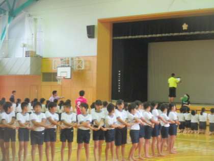 5・6年生は午後の授業で、運動会で行う組体操の練習に取り組みました。今日はウェーブの練習を中心に、全体の流れの確認も行いました。なかなか校庭での練習ができない中で、子どもたちは隊形移動や細かい動きをイメージしながら、教員の指示に従って取り組んでいます。あと1週間、最高の演技ができるように、5・6年生みんな気持ちを一つにしてがんばっていきましょう。