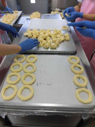 今日は夏休みの「米粉」の研修で教わってきた「米粉のポテトドーナツ」です。じゃが芋を蒸してつぶしたところにバター、三温糖、鶏卵、牛乳、ベーキングパウダーを加えて作ります。一つ一つ、丸めて輪にして、心を込めて作りました。