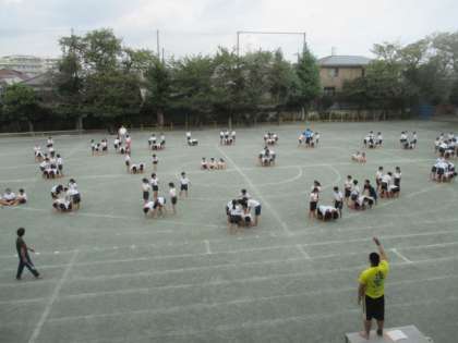 運動会まで残り2日となり、各学年の練習も仕上げの段階に入っています。心配されていた雨も何とかやんで、今日も朝から1日校庭での練習ができました。1年生のダンスは、衣装をつけて、入退場も含めての通し練習でした。高学年も同じく、組体操を通しで練習していました。明日は、いよいよリハーサルです。各学年、本番同様に行います。もうひと踏ん張りがんばりましょう。