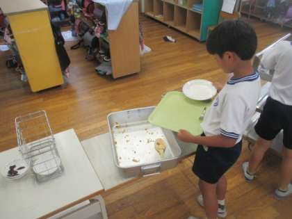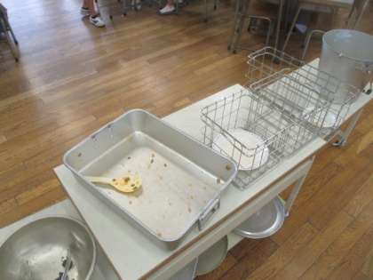 連日の運動会練習でしっかり運動し、お腹もペコペコ。2年生の教室をのぞくと、食缶がきれいに空っぽになっていました。もりもり食べて、明日のリハーサルもがんばりましょう。