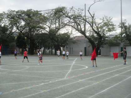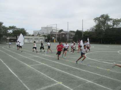 運動会を明日にひかえ、応援団は最後の仕上げをしています。早朝から校庭を使っての実践練習です。団長を中心に、とても気合いが入っていました。