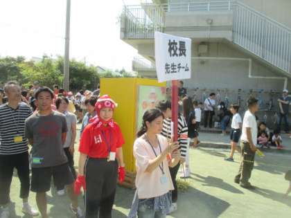 今年もPTA・地域競技は、校長と副校長チームに分かれての綱引きです。たくさんの保護者や地域、卒業生の皆さんに参加していただきました。結果は副校長チームが、昨年度に引き続き勝利しました。