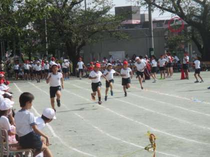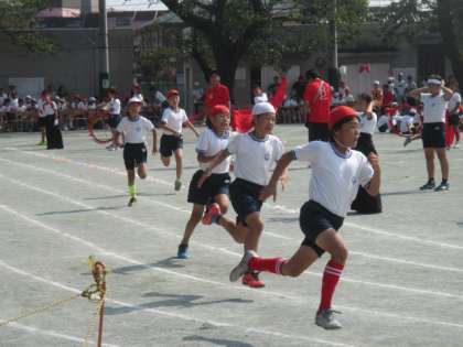 後半戦最初の得点競技は、5年生の100m走です。さすが高学年、コーナーの走りにも迫力があります。ゴール直前まで接戦となるレースが続きました。