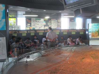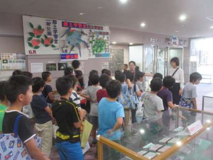 クラスごとに前半と後半に分かれて、2つの学習をします。郷土資料室では、世田谷区の地形や歴史など、さまざまな観点での調べ学習ができます。子どもたちは、事前に準備した課題を追究するために、指導員の先生方の説明を聞いて、一生懸命に課題に取り組んでいました。