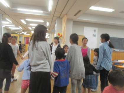 雨降りで校庭に出られないので、中休みは校舎内で過ごします。1年生の教室には6年生が来てくれて、1年生のお世話をしてくれています。手をつないでくれたり、だっこしてくれたりして、1年生はとてもうれしそうです。やさしいお姉さんやお兄さんたちに囲まれて、1年生は幸せです。