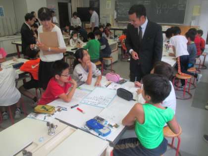 5校時、今年第3回目の校内研究授業が行われました。4年1組の坪木教諭による、『ものの体積と温度』の単元で、水は温度によって体積が変化するかを、根拠を明確にして予想し、予想をもとに実験計画をたてる授業でした。それぞれグループでの話し合い活動を通して意見を交換し、次時の実験につなげることができました。子どもたちは自分の考えを整理しながらノートにまとめ、意欲的に授業に参加していました。
