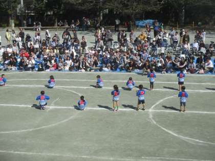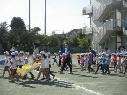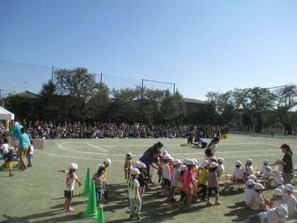 秋晴れの下、近隣にある区立松沢保育園の運動会が、本校校庭で行われました。それぞれの年齢の園児たちのかわいらしい演技が披露され、参観した保護者に方々からは大きな拍手と歓声が鳴り止みませんでした。本校に在学している兄姉も保護者競技に参加するなど、楽しい時間を過ごしていました。