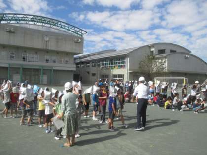 今月の避難訓練は地震が発生したという想定で行われました。地震発生後の避難については、全員立派な行動がとれていましたが、いつ何時やってくるかもしれないのが地震です。まず自分の身は自分で守ること。普段からどんな場所に身を寄せるかを考え、「落ちてこない・倒れてこない」場所に素早く身を寄せること。このことをいつでも意識して生活していきましょう。
