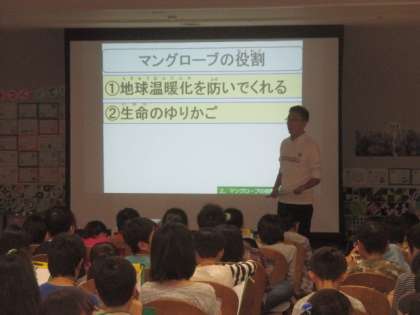 3年生は総合的な学習の時間で、エコライフ活動の導入として、東京海上日動火災保険の方々を講師にお迎えしての「みどりの授業」に取り組みました。地球温暖化や食物連鎖などといった3年生には少し高度な内容を、クイズを交えながら楽しく学びことができました。今後の学習に向けて、大変興味深い授業をしていただきました。講師の皆さんには、早朝から準備していただき、ありがとうございました。