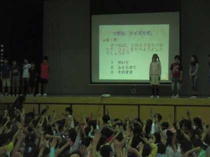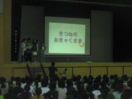 今朝の児童集会は、図書委員の児童による読書集会です。全校児童に絵本の読み聞かせやクイズ、おすすめの本の紹介がありました。読書の秋ですので、たくさん本を読んでいきましょう。