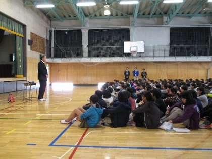 みどりの学び舎の緑丘中主催の「小6見学会」に、6年生は午後から参加しました。同じ学び舎の上北沢小・経堂小の3校の小学校の6年生が集まり、中学の授業を参観し、学校生活や学校行事の説明を受けました。
