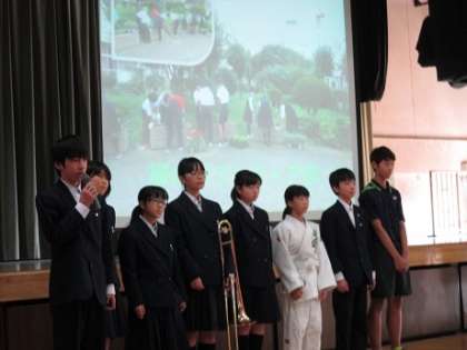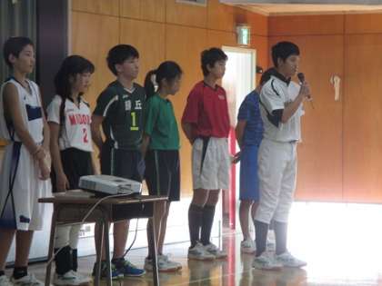後半は緑丘中学校生徒会役員の生徒による学校紹介や、部活動の紹介、教員による学校行事などの説明がありました。どの小学校の6年生も説明をしっかり聞いて、中学生活への関心を深めていました。6年生は卒業に向けての準備と並行して、中学進学に向けての準備も始まっています。