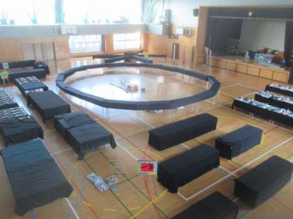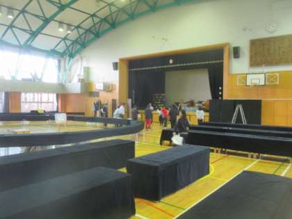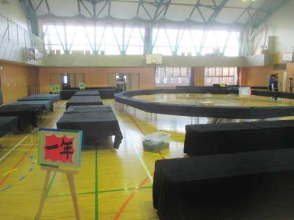 先週末から体育館が使用不可となり、展覧会の準備が進められています。ランチルームなどからテーブルが運ばれ、作品の展示の下準備が完了しました。いよいよこれから作品を搬入していきます。来週11日(金)から展覧会が開催されます。楽しみです。