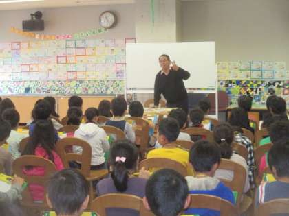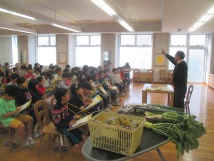 3年生は社会科の地域の学習で、農業を行っている地域の方の畑を見学しました。その後、学校に戻って、見学させていただいた農家の方をゲストティーチャーにお迎えして、「農家の人々の仕事」についてお話していただきました。世田谷の農業について、お店で売られている野菜や果物などがどのように育てられているのか、農家の方がのどのような工夫をしているのかなどについて、丁寧に説明していただきました。畑や農具、実際に収穫された野菜を間近に見ることができ、教科書では学べない貴重な体験ができました。ご協力いただき、ありがとうございました。