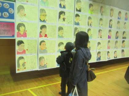 放課後、保護者の方々が続々と来校し、展覧会を鑑賞されていました。一度下校した児童も、お母さんと再登校して鑑賞していました。明日土曜日は、朝の9時から夕方の4時まで開放しています。学校公開期間も始まりますので、ぜひご来校いただき、ご覧なってください。