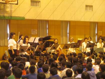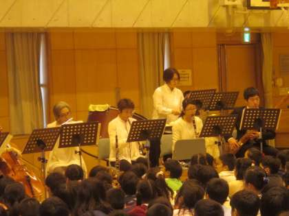第1部が終わり、休む間もなく第2部の開演です。4〜6年生をオーケストラの皆さんが演奏して出迎えてくださいます。高学年の子どもたちもプロの生演奏を間近で聴くことができ、その表情は真剣そのものでした。今日演奏していただいた演奏者の皆さんは、何ヶ月も前から打ち合わせをし、昨晩は遅くまでリハーサルをして今日の演奏に備えてくださいました。オーケストラの皆さん、今日は素敵な演奏ありがとうございました。