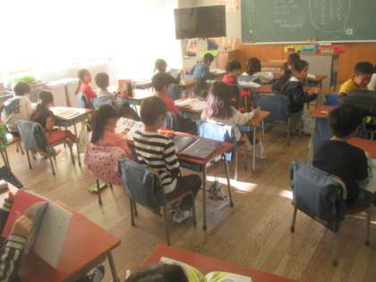 冬晴れの爽やかな朝の登校の様子です。南門からも「おはようございます!」の元気なあいさつが聞こえてきました。始業前の図書タイムでは、子どもたちが教室で静かに本を読んでいました。今日も1日がスタートします。