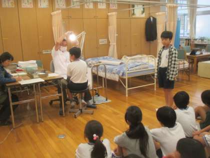 今日は全学年で歯科検診が行われました。学校医さんが、一人ひとり丁寧に子どもたちの歯をチェックしてくださいました。子どもたちもしっかり順番を待ち、診ていただいた後にはきちんとお礼も言えました。虫歯のない健康な歯で維持するために、治療が必要な子は早めに歯医者さんに行きましょうね。