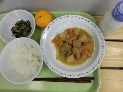今日のデザートは、熊本県産「夢未来」というみかんを出しました。熊本県の海側中央、熊本市西区河内町のブランドみかんです。海に面しただんだん畑でお日様をいっぱい浴びて育ちました。給食でも使う「河内晩柑」もこの地方の特産物で、河内町の「町の木」はみかん、「町の花」もみかん花です。今日のみかんも美味しくいただきました。