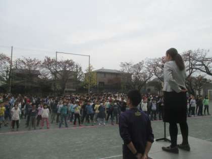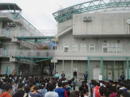 今朝の全校朝会では、校長先生から学校主事さんのお仕事についてのお話がありました。いつも子どもたちの安全を第一に考えて、学校環境の整備をしてくださっている主事さんたちに感謝しましょうという内容でした。看護当番の先生からは今週のめあてについてのお話がありました。先週に引き続き、「1日1回以上、人から『ありがとう』と言われるようにしよう」でした。今週も「一日一善」を心がけ、みんなで助け合って気持ちよい学校生活を送れるようにしていきましょう。