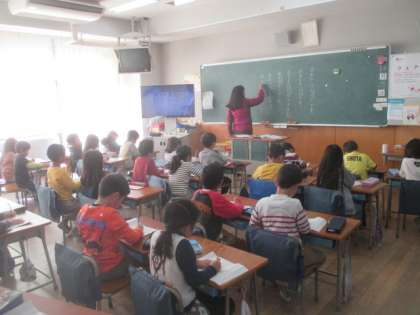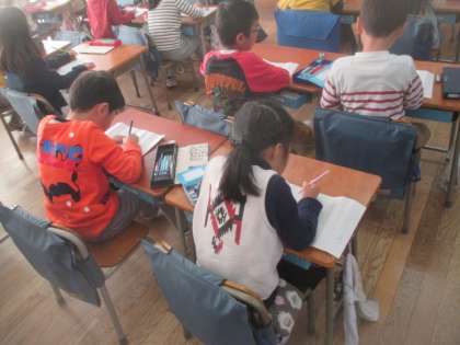 1年生が漢字の学習を始めて2ヶ月あまりが経ちます。今日は2組で漢字の小テストが行われていました。毎日繰り返し練習して覚えたはずですが、いざテストとなると思い出せない字もあったようです。できてもできなくても、また繰り返し練習していきましょうね。