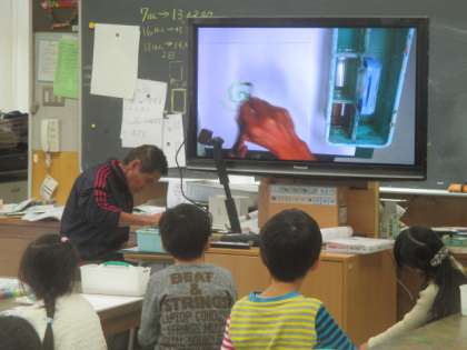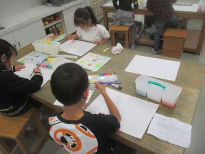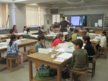 1組の1・2時間目は、図工専科の松浦先生による授業でした。絵の具の使い方を教わり、画用紙に好きな色で模様を描きました。ピカピカの絵の具セットで、初めて絵を描いた子どもたちは、みんなとてもうれしそう。その絵の具で、これから素敵な絵をたくさん描いてくださいね。