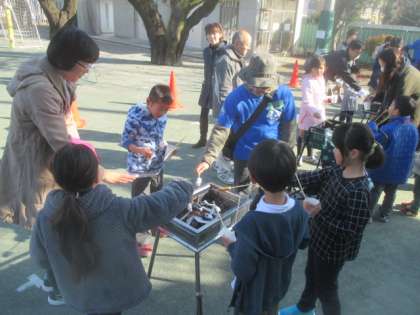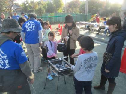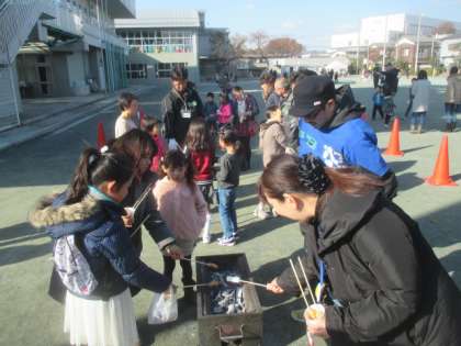 マシュマロ・ウィンナーは、炭火で焼きます。おやじの会のお父さん方が、焼き方について安全にかつ親切に手ほどきしてくれました。焼きたてのウィンナーはとてもジューシーでおいしかったです。