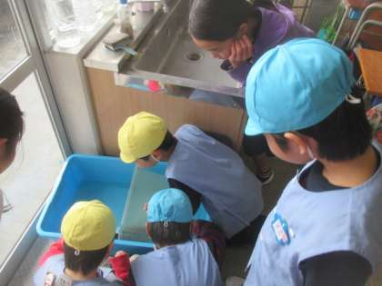 クラスで飼っている亀をさわったり、広い校庭を散策したりと、楽しい時間はあっという間でした。園児の皆さんはとても満足した表情で帰って行きました。今日は、八幡山小学校が楽しいところだということ、やさしいお兄さんやお姉さんたちがたくさんいることなど、たくさんのことが分かったと思います。また3学期にも交流活動があります。楽しみにしていてくださいね。