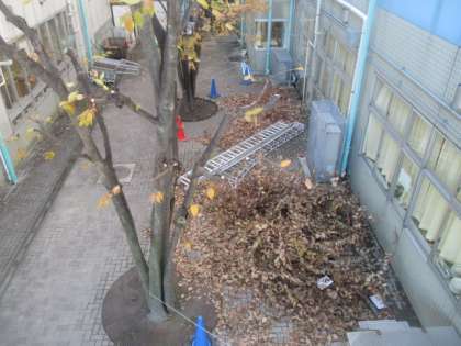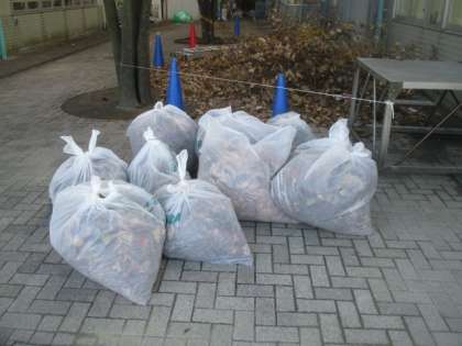大きなゴミ袋の山ができました。主事さんたちも庭木の剪定をしているので、校庭は本当にすっきりしました。この活動を通して、子どもたちは、学校をみんなできれいにすることがとても気分のよいことだということに気がついたと思います。これからも環境美化を心がけていきましょうね。