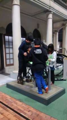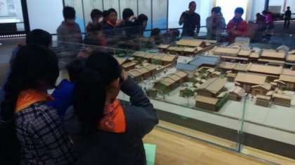 霞ヶ関をバスの車窓から見学して、江戸東京博物館に到着しました。グループで館内を自由に見学しました。