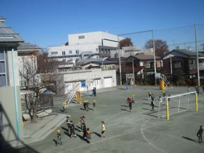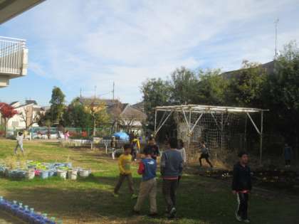 冬晴れの気持ちよい青空の校庭からは、体育の授業や休み時間に、子どもたちの元気な声が聞こえてきました。学級園前の草地でも、楽しそうに遊んでいる子どもたちがいました。寒さに負けずにしっかり運動して、風邪に負けない丈夫な身体をつくりましょう。