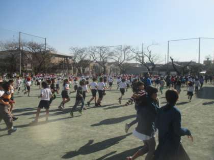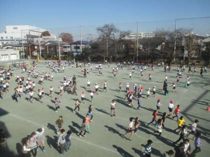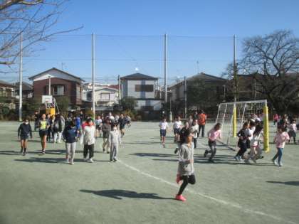 金曜日の中休みは金スポです。今日は11月から取り組んできた「ランランランニング」の最終回でした。冬晴れの空の下、気持ちよくみんなで走ることができました。全校での取組は今日で終了ですが、健康のために、これからも休み時間にはたくさん走ってほしいです。
