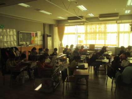 12月の土曜授業日です。ちょっと眠そうな登校時の子どもたち。教室で身支度をした後、図書タイムで静かに本を読む2年生です。今日は3時間授業。がんばりましょう。