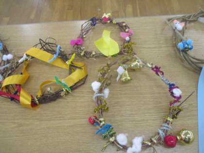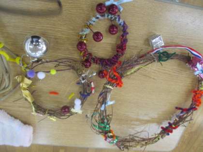 1年生は、生活科の授業でクリスマスのリースを作りました。1学期に育てたアサガオを乾燥させて束ね、思い思いに飾り付けをしました。どれも素敵なリースに仕上がっていました。クリスマスが楽しみになりますね。