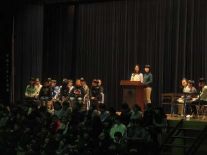 今朝の児童集会は、6年生の学年発表でした。今年の夏休みに行った日光林間学園の活動報告を全員で行いました。体育館の舞台やギャラリーを使って、日光での思い出を俳句にして紹介してくれました。楽しかった思い出の数々を後輩に伝え、6年生は残り3ヶ月あまりとなった小学校生活を締めくくっていきます。