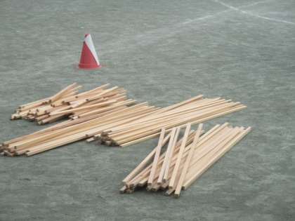 6年生は、建築家の方々をゲストティーチャーにお招きして、空間ワークショップ「まちをつくろう」の活動が校庭で行われました。早朝から校庭にはたくさんの木材が搬入され、準備が進められました。まずは、講師の紹介と活動の説明がありました。どんな「まち」ができるか楽しみです。