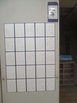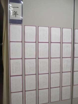 1・2年生の硬筆の書き初めは、1階の準備室の前に掲示されています。1年生もしっかりお手本を見て、ていねいに書けていました。来週の16日(月)から1週間展示されていますので、学校公開期間の際にでも、じっくり立ち止まってご覧なっていただければと思います。