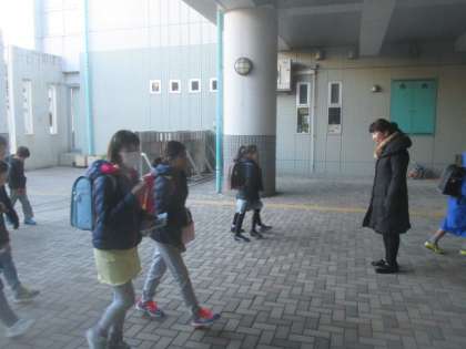 3学期も1週間が経ち、今日は土曜授業日です。校長先生のお出迎えで、今朝も子どもたちが元気にあいさつして登校してきました。とても寒い朝になりましたが、気持ちよいあいさつで1日がスタートしました。