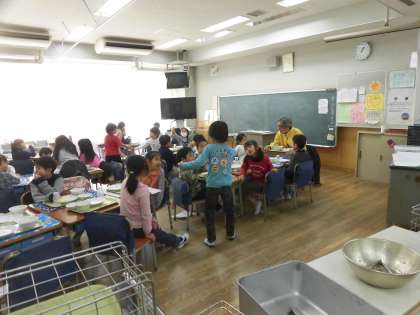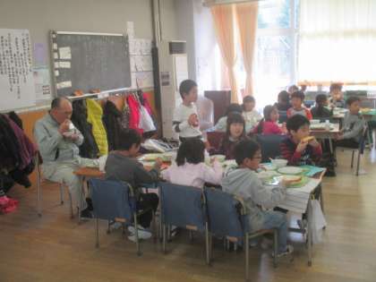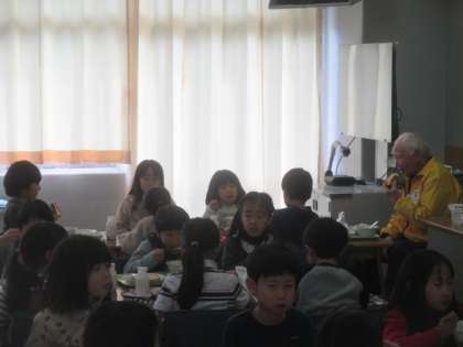 昔遊び体験で楽しく遊んだ後、ご協力いただいた地域の方々とのふれあい給食が行われました。1年生それぞれの教室で、今日の楽しかった昔遊びに会話も弾み、楽しい会食になりました。ゲストティーチャーとしてご来校いただきました地域の皆様、本日は寒い中、長い時間ありがとうございました。今後も本校の教育活動にご協力いただきますよう、よろしくお願いします。