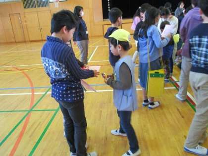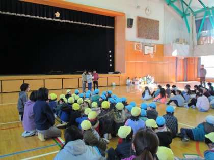 楽しい時間はあっという間に過ぎて、お別れの時間です。園児の皆さんはとても満足した表情で、最後にプレゼント交換を行いました。今日は、八幡山小学校が楽しいところだということ、やさしいお兄さんやお姉さんたちがたくさんいることなど、たくさんのことが分かったと思います。今春八幡山小学校に入学する予定の園児の皆さん、4月に待っていますよ。