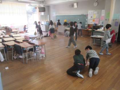 昼休みしっかり遊んだ後は、自分たちが使っている教室をきれいにします。それ以外も、割り当てられた場所を、みんなで協力して掃除をします。午後も気持ちよく勉強するために、自分の役割をしっかり果たしましょうね。