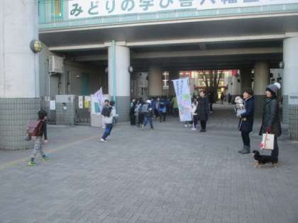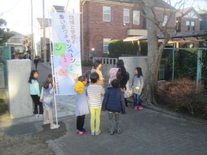 先週から始まったあいさつキャンペーンも最終日。今朝は1年生が校門に並び、登校する子どもたちを元気に出迎えました。南門でも、「おはようございます!」の大きな声が響き渡っていました。今回は、わんわんパトロールの皆さんにもご協力いただきました。ありがとうございました。
