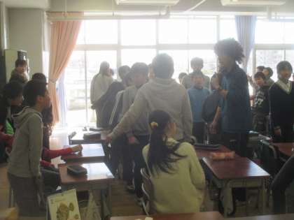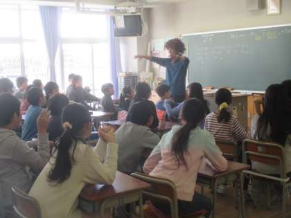 1組では、外国語活動と道徳の学習を合わせた、オリ・パラ教育の授業を行いました。英語を積極的に使い、友達と楽しく活動する中で、2020年東京オリンピックを迎える時の気持ちの準備について考えます。英語によるバブルガムゲームで盛り上がった後は、国際シンボルマークについて話、ピクトグラムクイズ、そして、外国の方や障害をもった方への気配りやおもてなしについて考える流れで、3年後の東京オリンピックに主体的に参加する意識を子どもたちにもたせる画期的な授業でした。