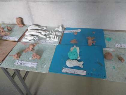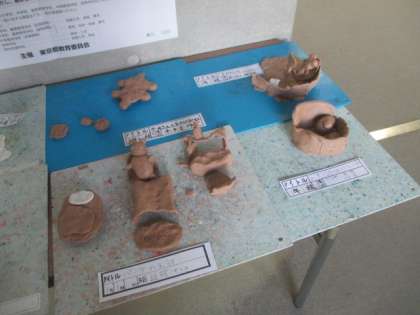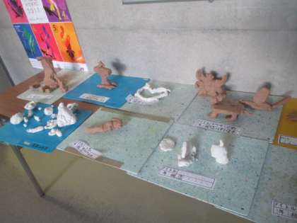 1年生が図工の時間に一生懸命作った粘土の作品が、1階の昇降口に展示されています。どれも、豊かな感性が光る力作ばかりです。ぜひ、ご覧なってください。
