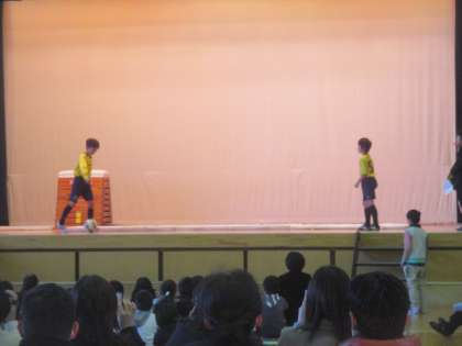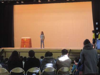4年生は総合的な学習の時間の取組として、毎年行っている『2分の1成人式』を、体育館で行いました。子どもたち一人一人が、「今までの自分」「これからの自分」について発表し、得意なことやできるようになったことを紹介します。それぞれが、習いごとなどでがんばっていることを披露しました。