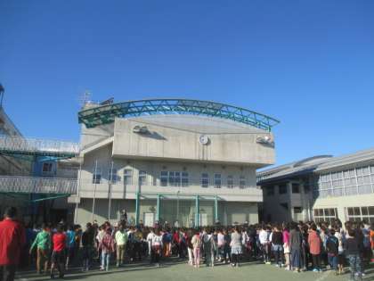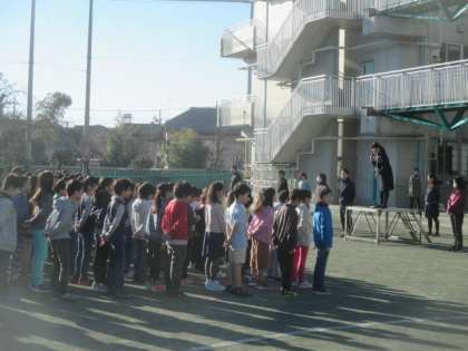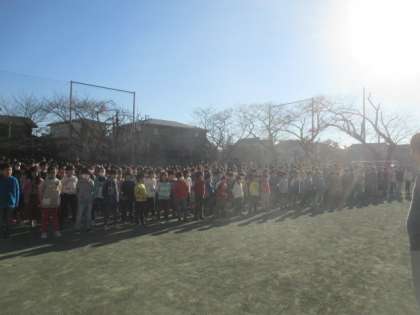 今日は寒さも少し緩み、気持ちよい朝日が差し込む中で全校朝会が行われました。校長先生からは、先日の節分の豆まきの話から、いつも笑顔で福を呼び込もうという話。看護当番の先生からは、6年生の卒業まであと1ヶ月あまりであることと、今週のめあてについてお話がありました。今日から2年生に転校生が2人入り、455人になりました。今週も1週間、がんばりましょう。