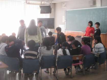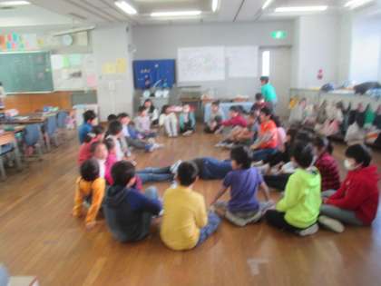 3校時、今年度最後のなかよし学級の活動が各教室で行われました。1年間お世話になったパートナーにメッセージを書き、「ありがとう」の感謝の気持ちを伝え合います。まずは、リーダーや副リーダーが企画した遊びで、みんないっしょに楽しく交流しました。