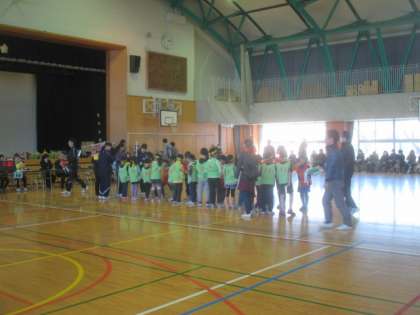 毎年恒例の青少年上北沢地区委員会主催のドッジボール大会が、八幡山小学校体育館を会場にして行われました。八幡山小と上北沢小の子どもたちが集まり、低学年と高学年に分かれてチームを作って競います。八幡山小学校からは70名あまりの児童が参加しました。開会式では両小学校の高学年児童が選手宣誓をして、大会はスタートしました。