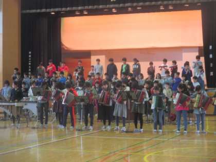 午後の体育館では、6年生が卒業に向けての各行事で演奏する楽曲練習に取り組んでいました。それぞれのクラスで練習してきたことを、本番同様のシチュエーションで合わせていきます。どの子も真剣な表情で、体育館には緊張感が漂っていました。すてきな演奏が聴けるのを楽しみにしています。
