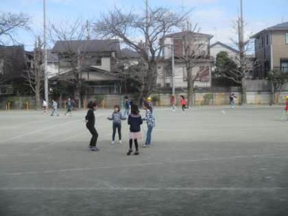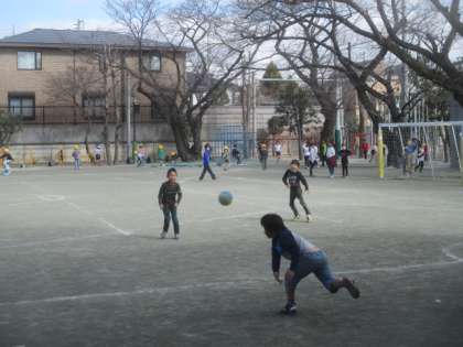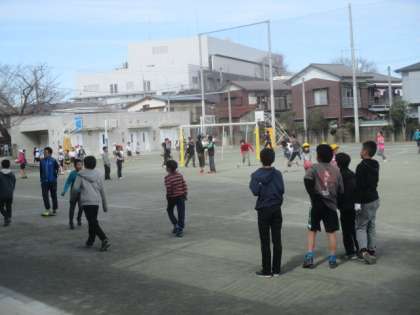 美味しい給食の後は、元気に外で遊びます。冬晴れの昼下がり、校庭では楽しげな笑い声が聞こえてきました。ドッジボールや縄跳び、一輪車など、思い思いの遊びを楽しんで、午後の授業もがんばりましょう。